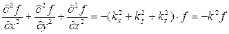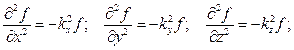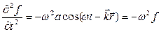 Функция (1) должна быть периодической как относительно времени t, так и относительно координат x, y, z. Периодичность по t следует из того, что f описывает колебания точки с координатами x, y, z. Периодичность по координатам вытекает из того, что точки отстающие друг от друга на расстоянии