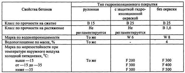 Соответственно принятому способу гидроизоляции меняются требования к физико-техническим характеристикам бетонов для кровельных панелей (табл.1).
