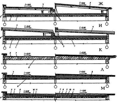 Конструкции бесчердачных крыш применяют в строительстве в следующих пяти вариантах (рис. 2):