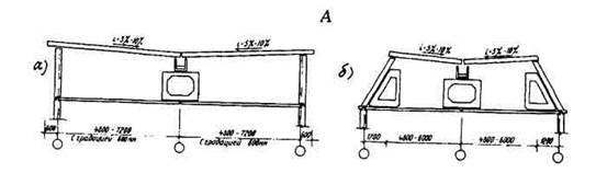 Конструкция раздельной бесчердачной крыши (тип И) содержит те же конструктивные элементы, что и чердачная крыша с холодным чердаком, но в связи с тем, что ее воздушное пространство имеет малую высоту (до 0,6 м), решение опорных конструкций упрощено.