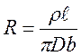 Сопротивление резисторов цилиндрической формы с пленочным резистивным элементом толщиной b < D определяется формулой