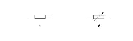 Рис.3.1. Условные графические обозначения резисторов: а - постоянный резистор, б - переменный резистор (потенциометр)