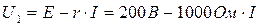 На зависимости U(I) (рис.3.14, б) приведена соответствующая нагрузочная кривая и нагрузочная кривая, соответствующая изменению нагрузочного сопротивления от бесконечности (режим холостого хода) до нуля (режим короткого замыкания). Ток короткого замыкания (при U=0) равен 0,2 А; напряжение холостого хода равно 200 В.
