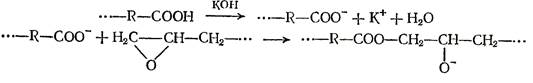 Наиболее высокую скорость имеет реакция между карбоксильной и эпоксидной группами. Процесс ускоряется в присутствии щелочных катализаторов: