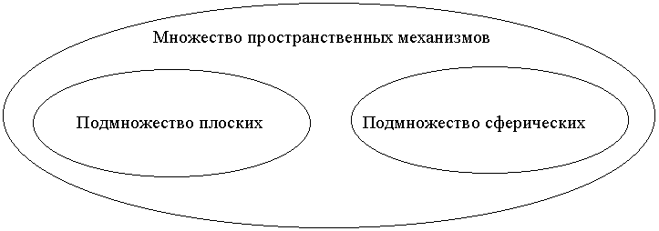 Все механизмы являются пространственными механизмами, часть механизмов, звенья которых совершают движение в плоскостях параллельных одной плоскости, являются одновременно и плоскими, другая часть механизмов, звенья которых движутся по сферическим поверхностям экивидистантным какой-либо одной сфере, являются одновременно и сферическими.