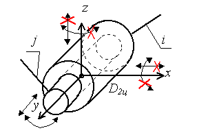 Примечание: Стрелки у координатных осей показывают возможные угловые и линейные относительные перемещения звеньев. Если стрелка перечеркнута, то данное движение в КП запрещено (т.е. на данное относительное движение наложена связь).
