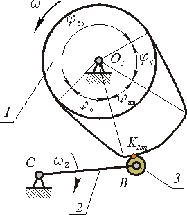 | Диаграммы функции положения и передаточных функций для зубчатой передачи. Кулачковым называется трехзвенный механизм состоящий из двух подвижных звеньев - кулачка и толкателя, соединенных между собой высшей кинематической парой. Часто в состав механизма входит третье подвижное звено - ролик, введенное в состав механизма с целью замены в высшей паре трения скольжения трением качения. При этом механизм имеет две подвижности одну основную и одну местную (подвижность ролика). Основные параметры кулачкового механизма: fраб - фазовый рабочий угол кулачкового механизма; fраб = dраб = fc + fдв + fу; fс - угол сближения; fдв - фазовый угол дальнего выстоя; fу - фазовый угол удаления; dраб - профильный рабочий угол; fбв - угол ближнего выстоя; hBm - максимальное перемещение точки В толкателя; r0 - радиус начальной шайбы кулачка; rр - радиус ролика. | ||