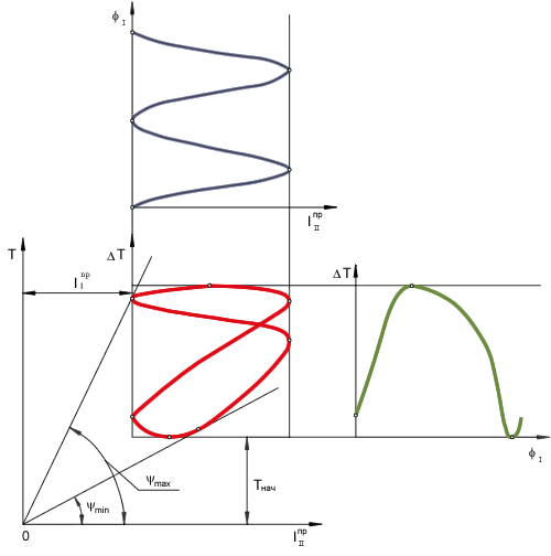 Затем к диаграмме проводятся касательные, образующие с осью х углы ymax и ymin . Точка пересечения этих касательных образует начало новой системы координат, смещенное от исходной по оси y на