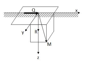 где y – координата, параллельная силе Q; R -расстояние до любой точки (R2 = x2 + y2 + z2 )