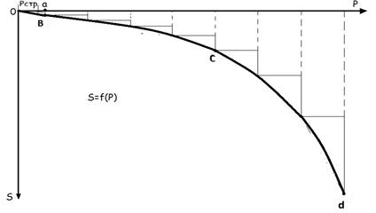 деформации до начала прогрессирующего течения называется фазой развития пластических деформаций, где линейность связи S=f(P) сильно нарушена