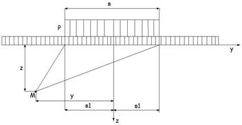 Рис 8.2 Схема действия полосообразной нагрузки (в - ширина нагрузки)