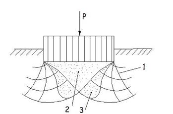 Линии скольжения (1 ), ядро уплотнения (2) и добавочные пластические области ядра (3).