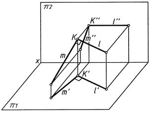 При проецировании l′ ┴ m′