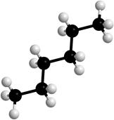Валентный угол в молекуле метана и его гомологов составляет 109,5◦. Поэтому углеродная цепь в молекулах алканов имеет зигзагообразную форму: