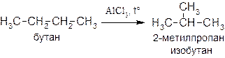 Использование при крекинге хлорида алюминия в качестве катализатора вызывает превращение алканов с нормальной цепью в их изомеры с разветвленной цепью. Этот процесс называется изомеризацией: