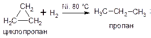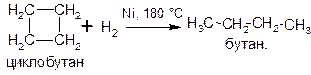 Циклобутан вступает в аналогичные реакции, но в более жестких условиях. Его гидрирование начинается при температуре около 180 оС:
