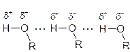 Температуры кипения спиртов существенно выше температур кипения соответствующих алканов с тем же числом атомов углерода. Это объясняется ассоциацией молекул спиртов вследствие образования межмолекулярных водородных связей (водородные связи изображены точками, буквой R обозначен углеводородный радикал):