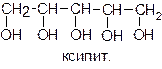 Существуют многоатомные спирты, содержащие и большее количество групп –ОН в молекуле, например, пятиатомный спирт ксилит, который используют в качестве заменителя сахара: