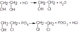 Замещение групп –ОН на галоген в случае многоатомных спиртов также происходит поочередно, причем первая гидроксильная группа замещается легче, а вторая – труднее: