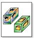 Используя наклоны по вертикали и горизонтали, растяжение и сжатие, нарисуйте упаковки для молока и сыра. Должно получиться примерно следующее: