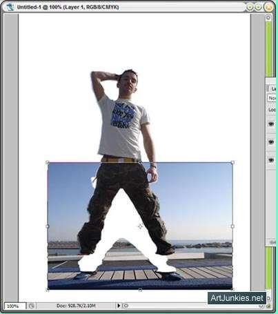 5. Выберите Слой 2 (который включает фигуру), Edit – Fri Transform (Редактирование - Свободная трансформация) и изменяем размеры, пока это не станет соответствовать ботинкам.