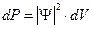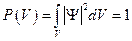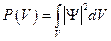 где dP - вероятность того, что для заданного квантового состояния частицы в некоторый момент времени мы обнаружим частицу в некоторой малой области пространства, объём которой dV. Поэтому для нахождения вероятности того, что частица находится в некоторой области V надо вычислить интеграл: