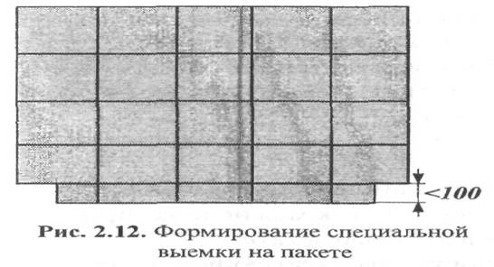 Для удобства захвата груза вилами ЭП или АП внизу пакета формируют специальные выемки высотой не более 100 мм (рис. 2.12).