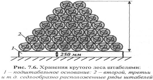 • 1-й способ - хранение круглого леса штабелями (рис. 7.6).