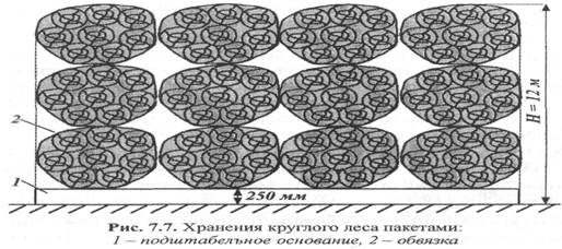 • 2-й способ - хранение круглого леса пакетами (рис. 7.7).