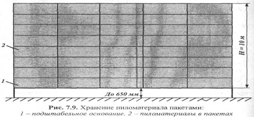 Рис. 7.9.Хранение пиломатериала пакетами: