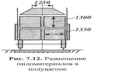 Размещение пиломатериалов в полувагоне показано на рис. 7.12.