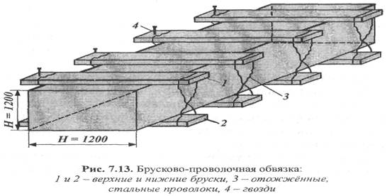 • 2-й способ. С применением брусково-проволочной обвязки (рис. 7.13).