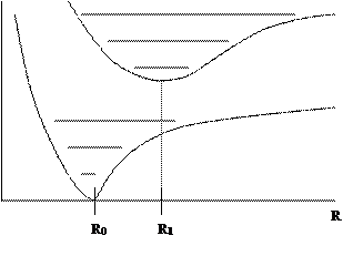 Простейшая молекула, состоящая из двух атомов. Каждый атом имеет электронные состояния, поэтому и молекула тоже имеет. 2 ядра могут колебаться друг относительно друга – это будет колебательная составляющая спектра. Также молекула может крутится – это будет вращательная составляющая спектра.