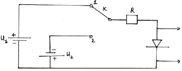 В начале диод включается в прямом направлении. В момент t= 0 переключаем ключ.
