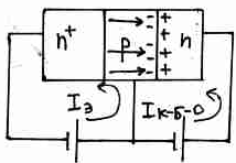 Практически весь эмиттерный ток обусловлен инжекцией электронов из Э в Б, и потом в К. Обратный ток дырок из Б практически отсутствует потому, что концентрация примеси разная. Э – сильно легированная часть транзистора, Б – слабо легированная часть транзистора.
