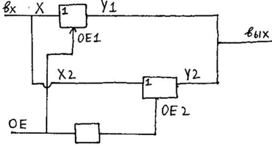 ОЕ – управляющее напряжение, подаваемое на ключ. у –выходной сигнал.