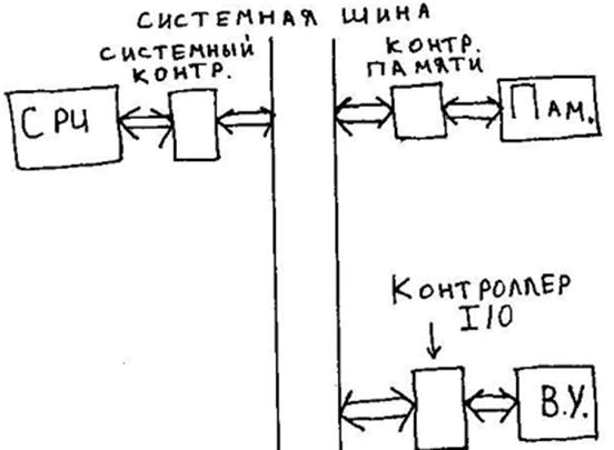 Контроллер системной шины – устройство, которое обеспечивает стандарт шины. Сигналы на шине практически никогда не совпадают с сигналами шины. Контроллер формирует сигналы, характерные для этой шины.