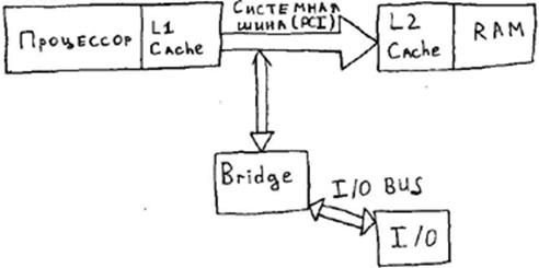 Изменилась структура шины. Была системная шина ISA, к которой все подключалось. Сейчас есть понятия системной шины (System Bus) и шины внешних устройств (I/O Bus). Это 2 разные вещи. После КЭШ L1 данные идут на КЭШ второго уровня (КЭШ L2). КЭШ L2 находится близко, он большой. Если нужен обмен большим объемом данных между внешним устройством и процессором, то эти данные сначала записываются в КЭШ L2. Это его основное назначение.