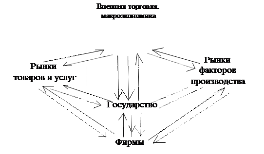 Как видно на схеме, в экономической жизни есть 3 главных участника: Семьи, Фирмы, Государство. Они взаимодействуют между собой, координируя свою деятельность, как непосредственно, так и через рынки факторов производства, т. е. ресурсов, с помощью которых можно организовать производство благ и потребительских товаров (благ, непосредственно потребляемых людьми).