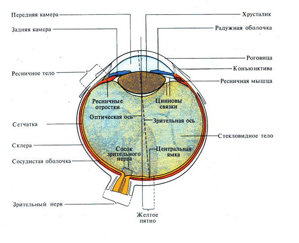 Рис. 1. Строение глаза человека.