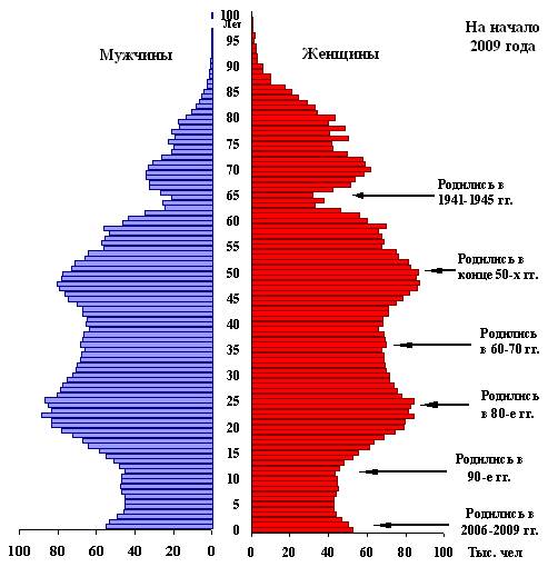 Если население страны претерпевало различные социальные катаклизмы – тяжелые войны, голод, массовые репрессии и т.д., то на боковых гранях пирамиды могут быть «зазубрины», соответствующими снижениям рождаемости в эти периоды.