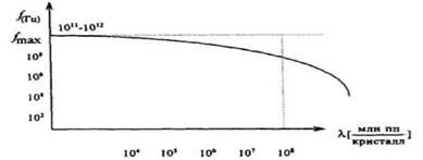 Протекание тока по микроскопическим проводникам сопряжено с выделением большого количества тепла. Поэтому, создавая сверхбольшие интегральные схемы, проектировщики вынуждены снижать тактовую частоту работы микросхем. На рисунке 3.42 показано, что использование максимальных частот работы возможно только в микросхемах малой и средне интеграции. Максимальная частота 1тах=1011-1012Гц доступна очень немногим материалам: кремнию Si, арсениду галлия GaAs и некоторым другим. Поэтому они чаще всего и используются в качестве подложек в микросхемах.