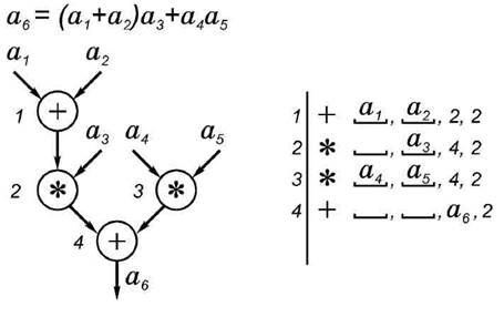 Рис.2.1. Информационный граф математического выражения и порядок выполнения операций в выражении.