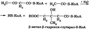 Полученный ацетоацетил-S-КоА конденсируется с третьей молекулой активного ацетата при участии специальной синтетазы, образуя b-метил-b-гидрокси-глутарил-S-КоА: