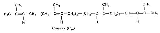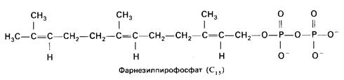 Конденсация двух 5-углеродных соединений (изопентенил-пирофосфат + 3,3-диметилаллил-пирофосфат) приводит к получению геранилпирофосфата (С5 + С5 = С10). Дальнейшая конденсация геранилпирофосфата с изопентенил-пирофосфатом (С10 + С5) дает образование фарнезил-пирофосфата (С15). В свою очередь, конденсация двух молекул фарнезил-пирофосфата заканчивается получением молекулы сквалена (С30).