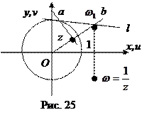Построим окружность с центром в точке О единичного радиуса (рис. 25). Возьмем внутри окружности точку z. Через точки О и z проведем луч (b) и перпендикулярную ему прямую (а). Через точку пересечения прямой (а) и окружности построим касательную к окружности до пересечения с лучом (b). Это точка