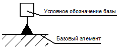 Базовый элемент обозначается при помощи зачерненного треугольника и связывается с рамкой, в которой указывается условное обозначение базы (рис.33, рис.36, б). Базы обозначаются заглавными буквами русского алфавита.