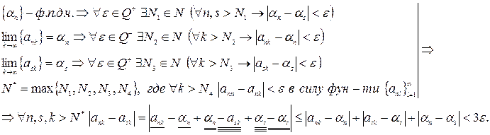 Теорема 8. Любая фундаментальная последовательность действительных чисел сходится в поле действительных чисел.
