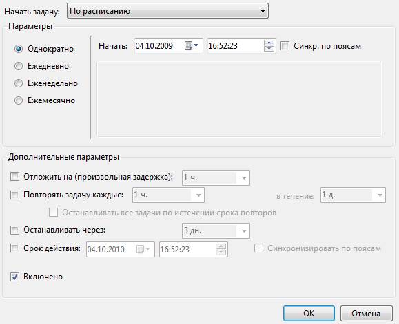 Также можно задать дополнительные параметры выполнения задачи на вкладке Параметры.