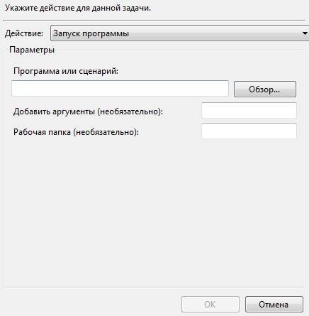 Чтобы запланировать выполнение программы по указанному расписанию, в раскрывающемся списке Действие выберите Запуск программы и с помощью кнопки Обзор укажите местоположение исполняемого файла.